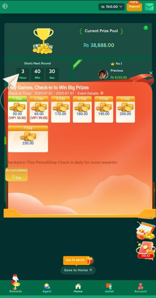 Being an agent in Crash7 Game offers steady passive income through referral commissions. You earn a percentage every time your invited users deposit or play. Agents often receive exclusive bonuses, priority support, and performance-based rewards. With no investment required, it’s a low-risk way to earn daily by promoting the game through WhatsApp, Telegram, or social media.
